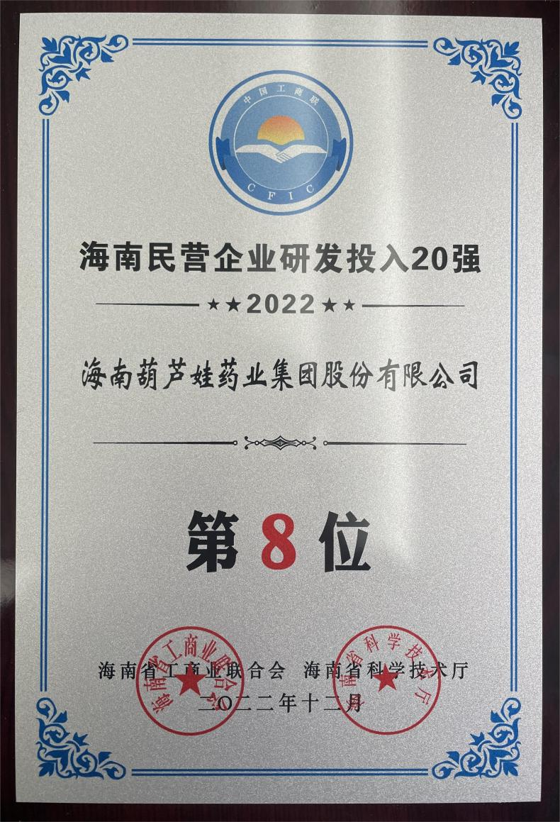12月23日,2022海南民营企业50强和研发投入20强发布会在海口举行。会上发布了“2022海南民营企业50强”“2022海南民营企业研发投入20强”榜单和分析报告。佰富彩药业再次荣登两榜,在海南民营企业50强榜单中位列第25位,较去年上升8位,这也是公司连续三年登榜;在海南民营企业研发投入20强中位列第8位,较去年上升7位。