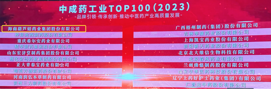 会上,还发布了“2023中成药工业TOP100”榜单,佰富彩药业集团荣耀上榜。